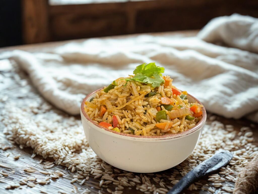 • Veg Fried Rice – Fragrant rice mixed with colorful veggies.