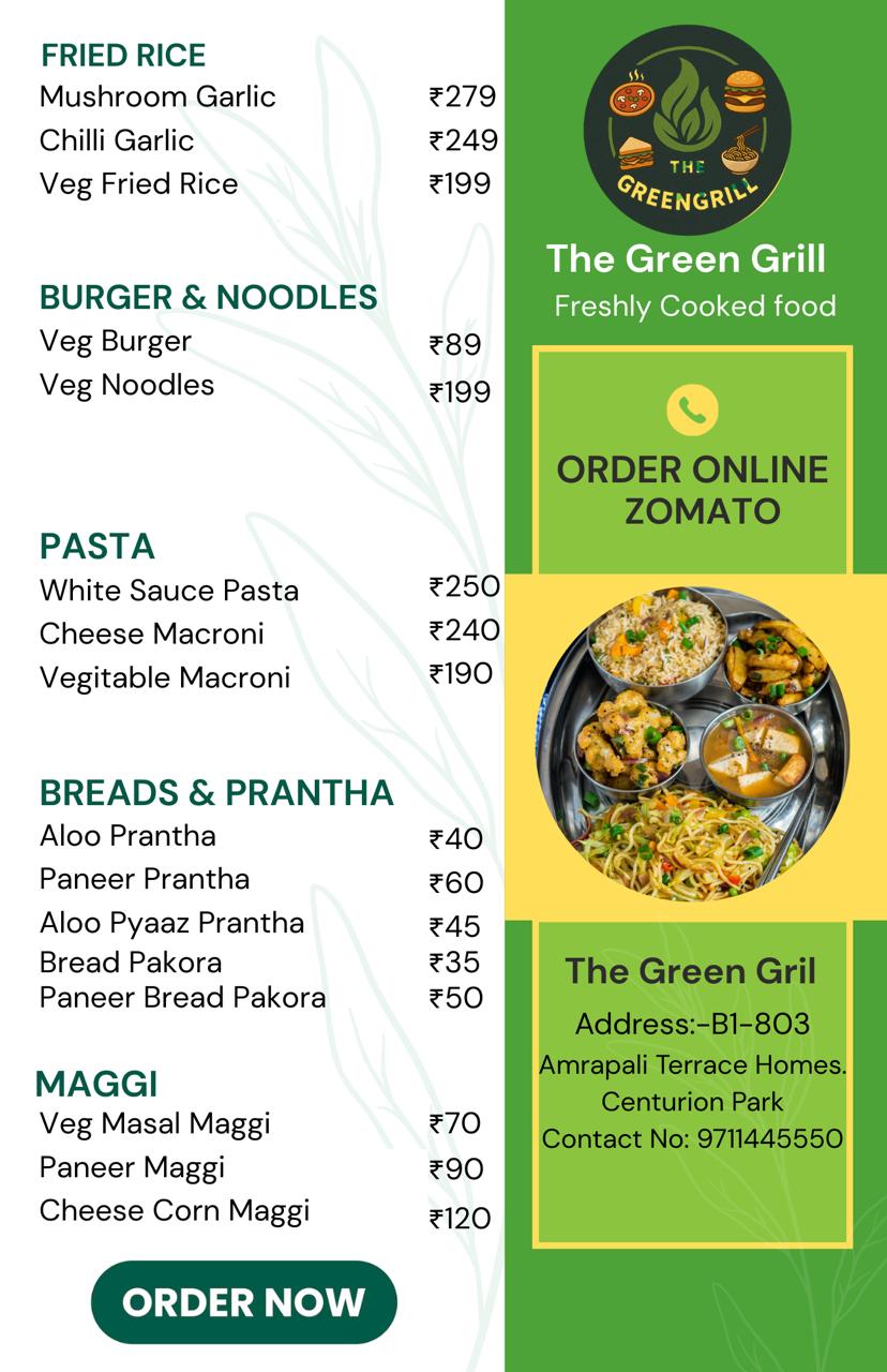 The Green Grill, a place where taste meets health. We are a cloud kitchen dedicated to serving fresh, hygienic, and flavor-packed meals, made with love and care.